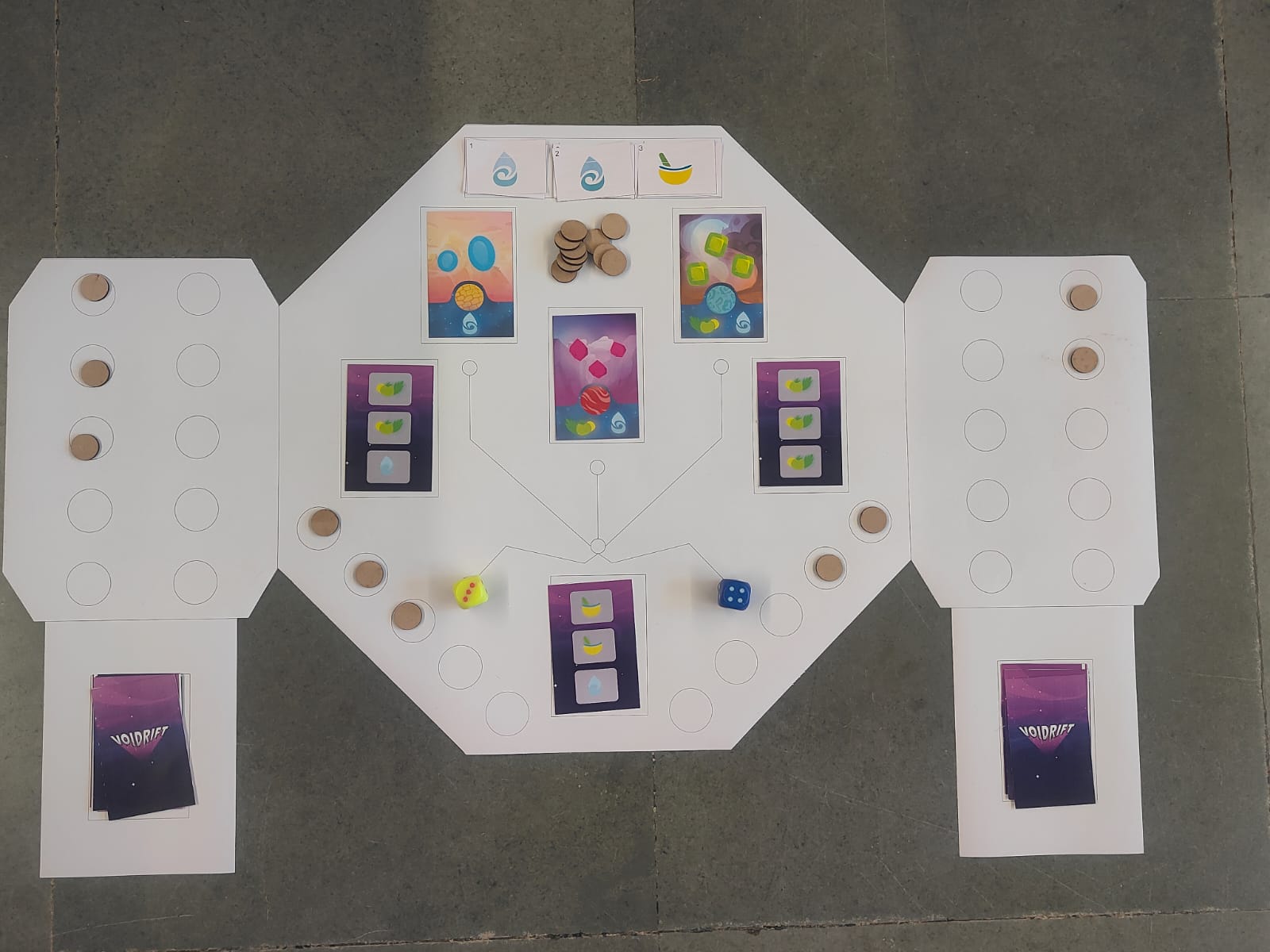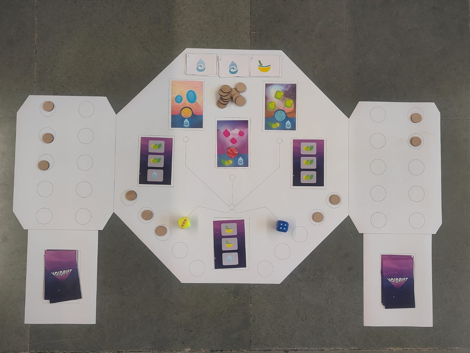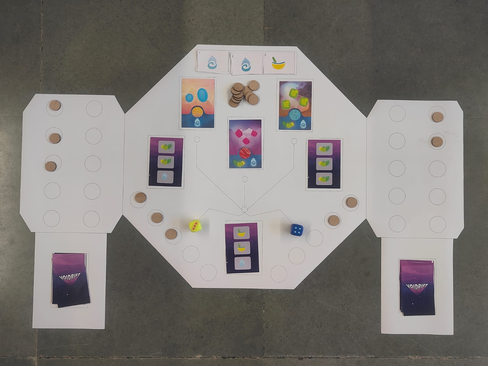 VOIDRIFT is a competitive two-player card game set across a fractured stretch of space where survival depends on resource flow and ruthless efficiency. Players draw from a shared Master Deck to manage limited supplies of Water, Food, and Meds, travelling between planets along a single rift corridor. Every decision costs fuel. Every shortcut leaves damage behind. Resources must be used in sequence, forcing players to adapt to what they receive rather than what they want. The race is simple: be the first to reach 10 Fuel Gems. The reality is not. Planets have needs some small, some severe. Players may fully support them, or exploit them by meeting only the bare minimum to gain rewards faster. These neglected worlds do not resist, and their consequences remain hidden until the end.